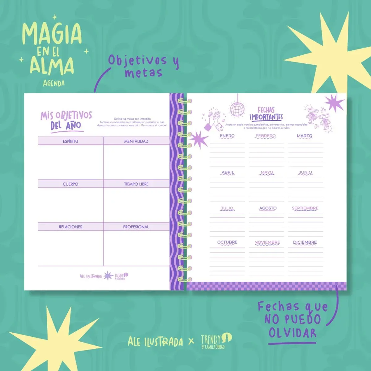 ¡Haz que cada día cuente con la Agenda 2026 Magia en el Alma! Diseñada por Trendy para ser tu compañera fiel, esta agenda combina organización profesional, estilo icónico y funcionalidad de alto nivel. Es la herramienta perfecta para manifestar tus sueños y mantener tu vida en or...